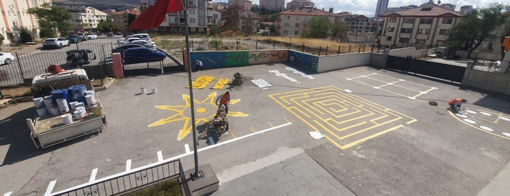Ankara Büyükşehir Belediyesi ekipleri tarafından okul bahçesi çizgilerimiz yenilenmiş olup emeği geçenlere teşekkür ederiz.